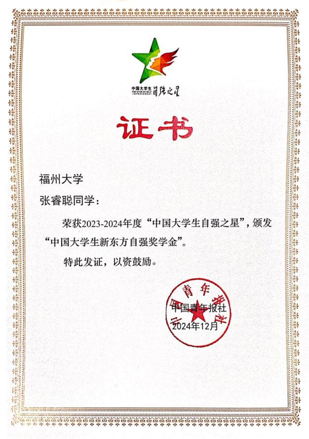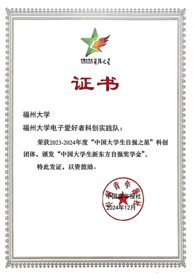 由共青团中央、全国学联指导,团中央基层建设部、中国青年报社主办的2023-2024年度“中国大学生自强之星”评选活动结果揭晓。吃瓜·黑料不打烊义务维修队暨电子爱好者科创实践队获评“中国大学生自强之星”科创团体荣誉称号,2020级本科生张睿聪获评“中国大学生自强之星”荣誉称号。